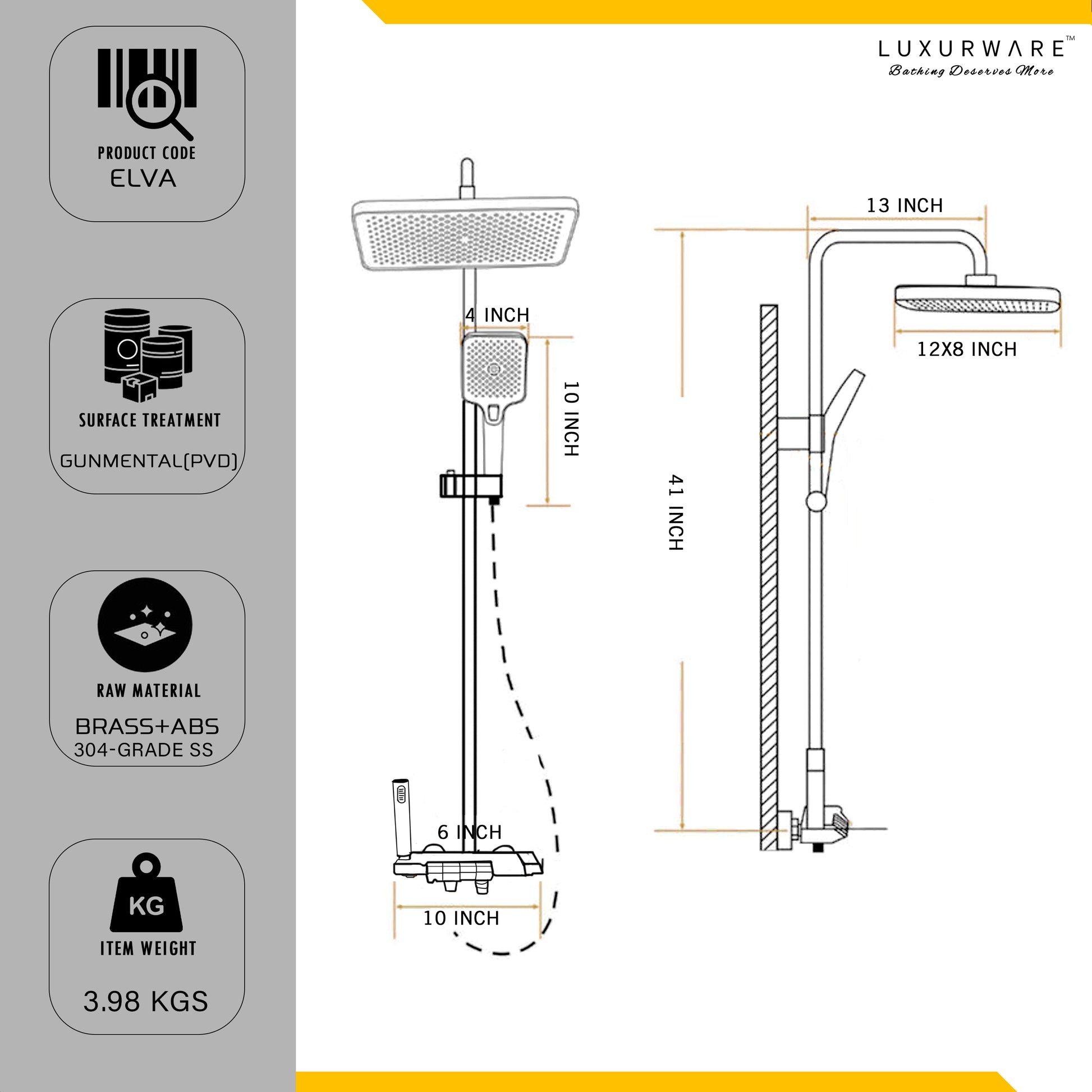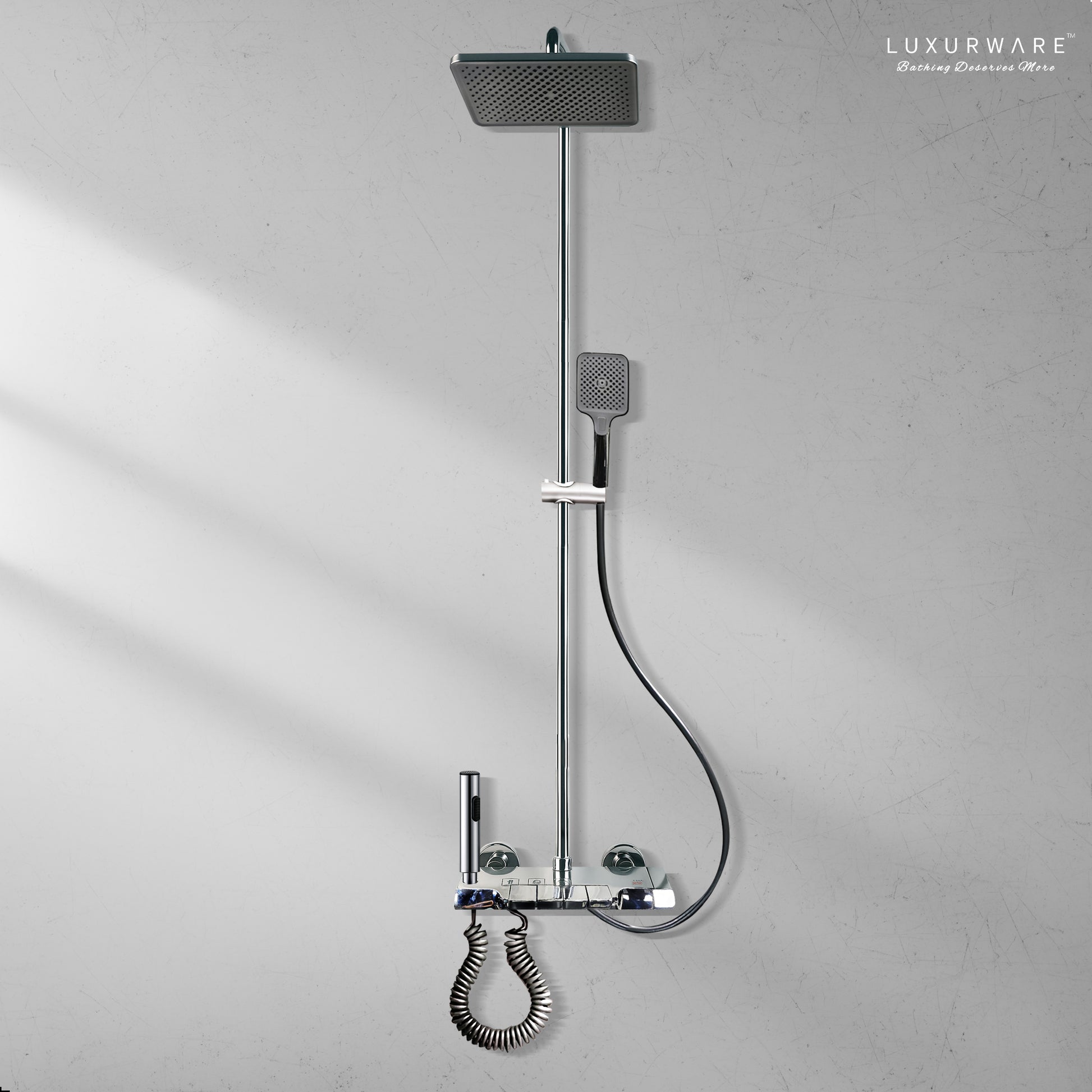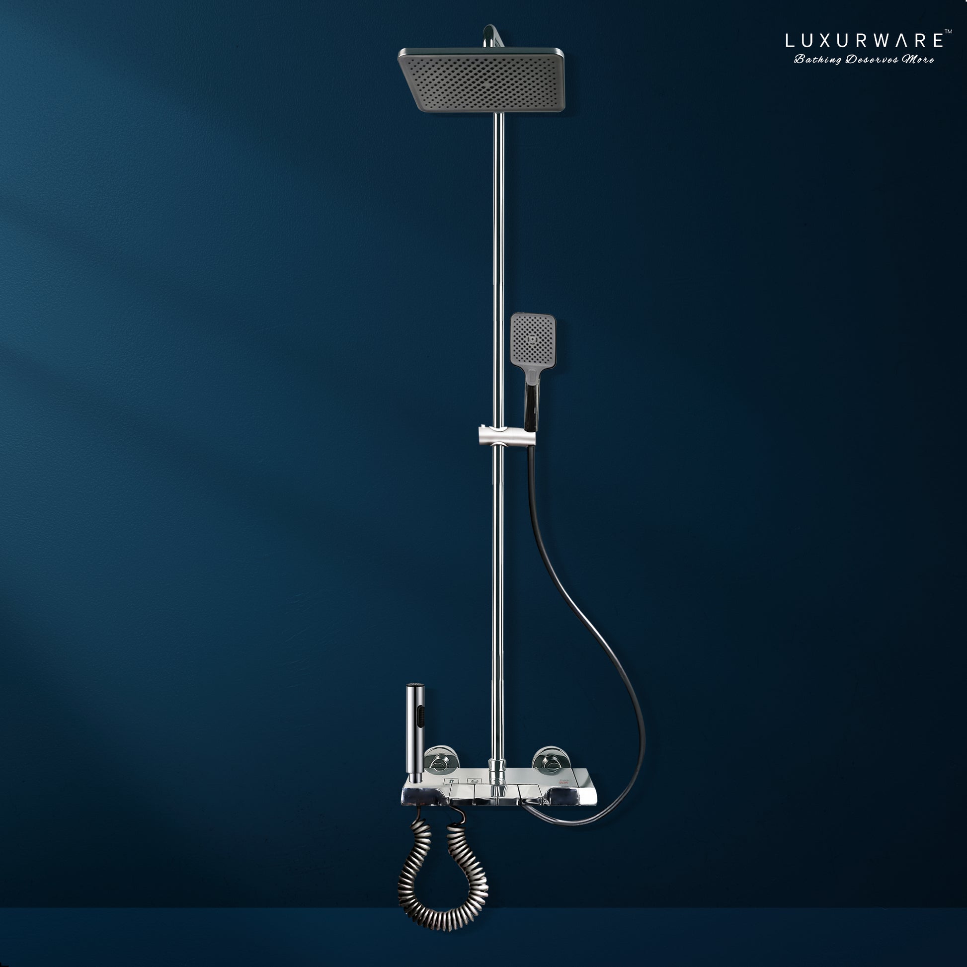 Luxurware ELVA – Sleek Chrome Shower System with Dual Outlets & Smart Temperature Display